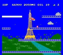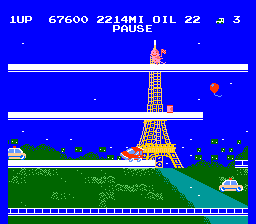 Okay, this doesn't have the same effect as an actual map. But as I said before, it's a royal pain to make those things for this game. Well, anyway, this is level 3. Paris. Notice how the Eiffel tower glows ominously in the background? Perhaps it's a sign of things to come. Notice how the hunks of bush are floating around in the background? Maybe level 3 is all just a big programming error...