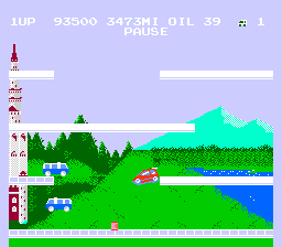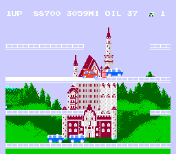 While on your zany adventure, you can be damn sure that you'll pass something big and grey and purple which is floating. No, it's not a scene from Dumbo, it's some sort of building. In level 4, The traditional cop cars are replaced with ambulances rushing to the scene of the crime. This is especially fun if you want to be a lawyer. You can chase ambulances all day at top speeds. Or, you can have even more fun and try to destroy said ambulances with the beaten to death throw-an-oil-can, crash-into-the-cops technique.