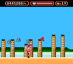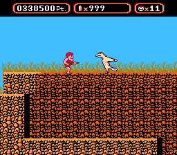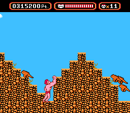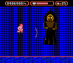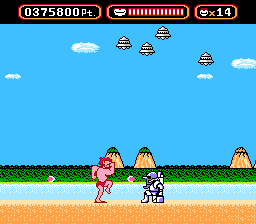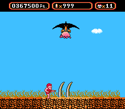 The "boss" at the end of this level is a "quote" "unquote" "barrage" of the aforementioned mosquitoes. Ouch. Pretty tame for the second-to-last stage.